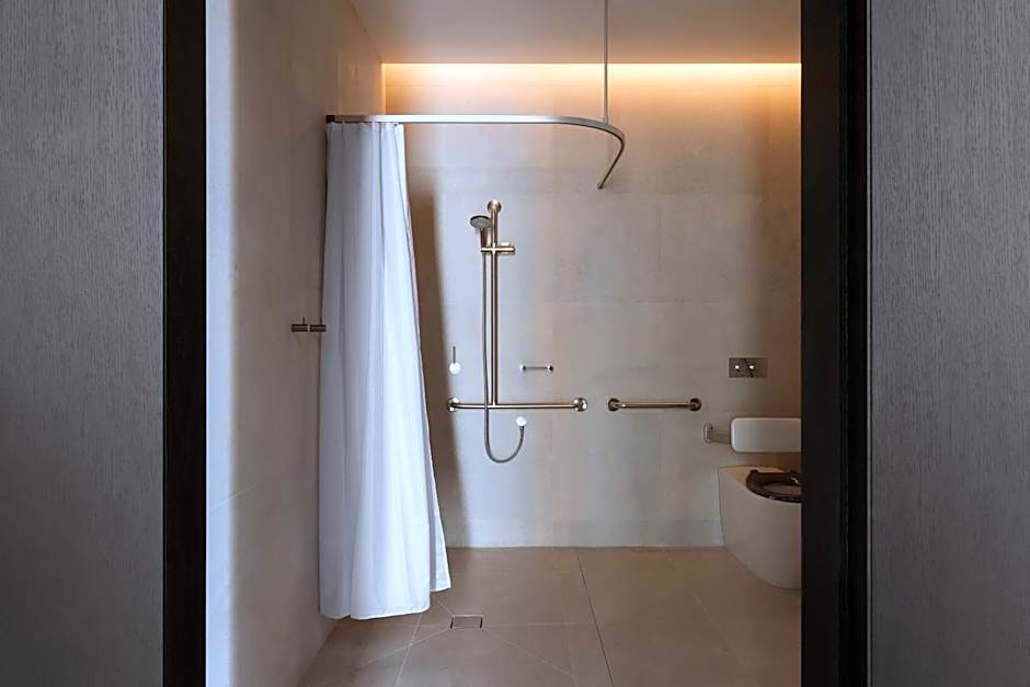 Averaging 289 ft², the Deluxe King Accessible suite is generous in its planning, offering additional space for guests who require greater accessibility. The specially designed bathrooms include a larger shower with handrails, while the sumptuously appointed guest room features a luxurious pillow-top super king bed fitted with custom Italian Frette linen. Offering a sense of spaciousness, the interiors honor the rich history of the building with high ceilings, soft textures and neutral tones. Custom furnishing, curated artwork and ambient lighting create a relaxing retreat. Intuitive technology allows guests to control lighting, multi-layered curtains, temperature and 24-hour in-room dining from the touch of a tablet, while the personal bar presents a curation of locally sourced products to enjoy in-room.